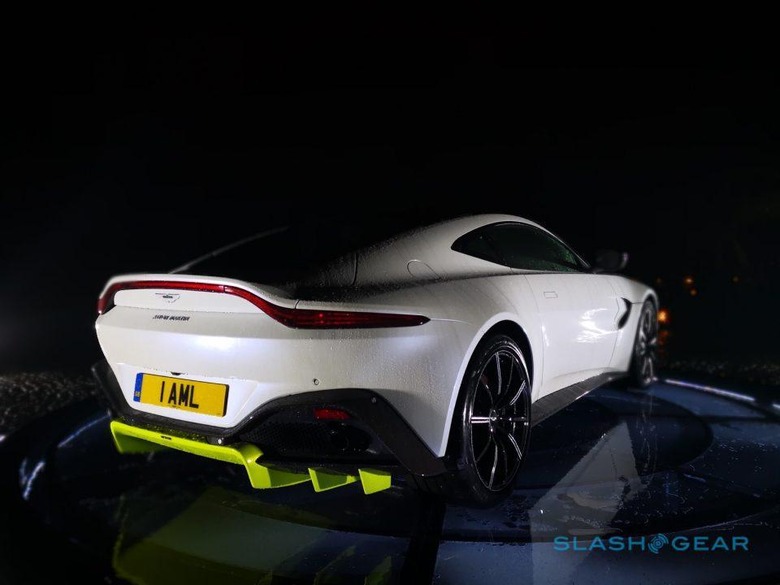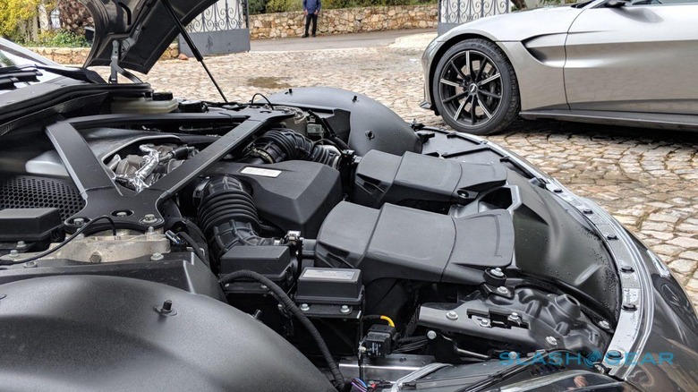 Keeping the slippery asphalt in mind, I was more than a little mindful of the highly tuned Mercedes-AMG twin-turbo 4.0-liter V8 engine which Aston Martin has used. In the new Vantage it's mated with a ZF 8-speed automatic transmission, and together they give you 503 horsepower and 505 lb-ft of torque. It really doesn't seem to matter what gear you find yourself in: lashings of torque are ready to be deployed.