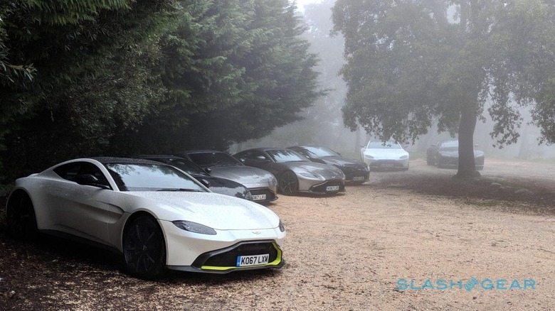 I confess, the road portion of the drive was, well, not as exciting due to heavy rain and visibility of less than a car-length courtesy of dense fog. It did give me the opportunity to get a sense of what a $150,000 Vantage feels like to drive every day, mind. Clearly it's no DB11, then again it's not supposed to be. The cabin feels tighter; the seat is snug but not uncomfortable. There's very little body roll, even in the passenger seat, and the redesigned dash puts all the switches and knobs within easy reach. Best of all, there are real, proper cupholders, not the fiddly flip-out versions Porsche insists of for the Cayman and 911.
