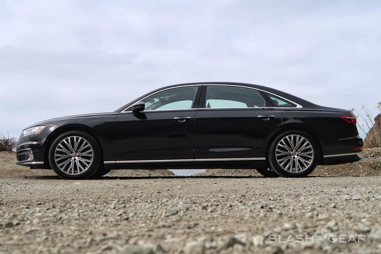 Speaking of road presence, the US market receives the long wheelbase as standard, hence the L designation on the A8 we drove. This configuration adds 5" to its length — but when viewing the A8 from its side profile, it appears long, but not awkwardly so.