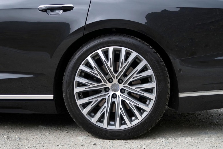 The A8 comes standard with adaptive air suspension, but can be upgraded to include predictive active suspension with the Adaptive chassis package to provide drivers with what Audi claims is benchmark ride quality.