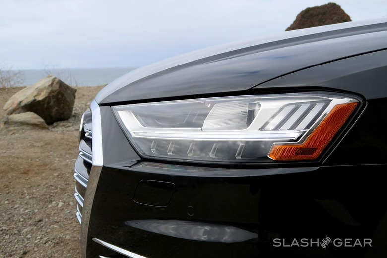 When comparing Audi's offering in this class, they have delivered the subtler of treatments for large luxury saloons on offer from Germany and Japan. Aside from the grille and a splash of silver on the sides, the A8 doesn't use many shiny visual devices to communicate its rank, so it's easy on the eyes, yet it still has a sense of presence on the road. In Europe you can downplay the appearance of the A8 even more with the ever-popular Black Optics Package, but US buyers will not be so fortunate, at least not on initial release.