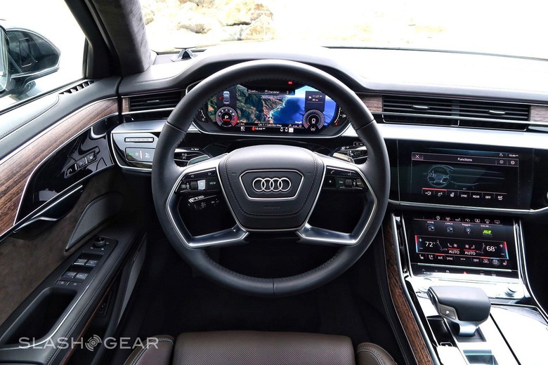 Do not for a single second expect that Audi's approach of keeping tech out of the way means stripping away all the digital whiz-bangery for an analog-only experience (sorry analog purists, keep lobbying). Instead they've taken two approaches: simplify the experience or get tech out of the way so you can focus on what you're doing — driving or being driven.