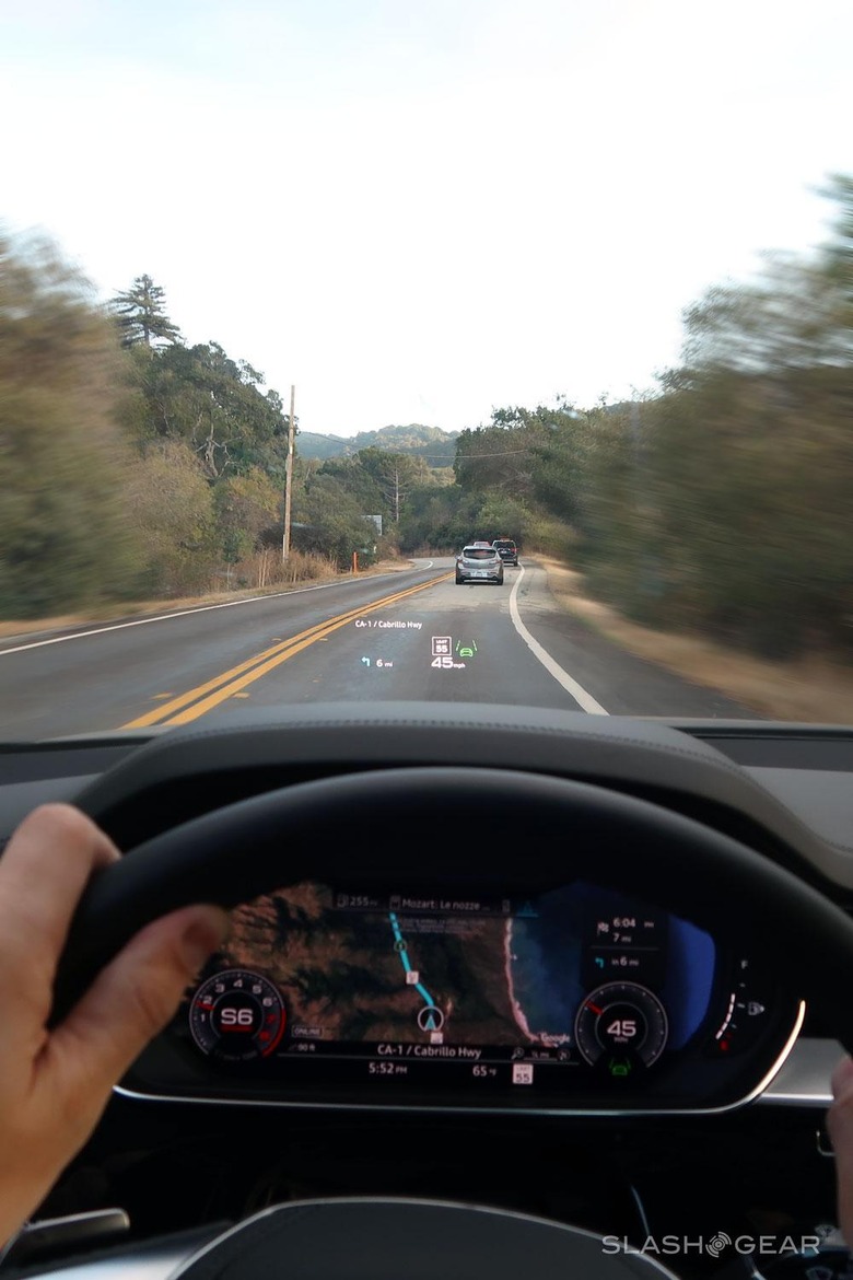 Audi had laid out a course to demonstrate this tech, complete with tight turns for low-speed maneuvering and high-speed directional changes. I drove the course first with the system turned off and then again with Dynamic All-wheel Steering switched on. The difference was more than mildly noticeable. This also translated into carving the curves around the Pacific Coast Highway, delivering a more engaging drive than I thought possible with such a large car.