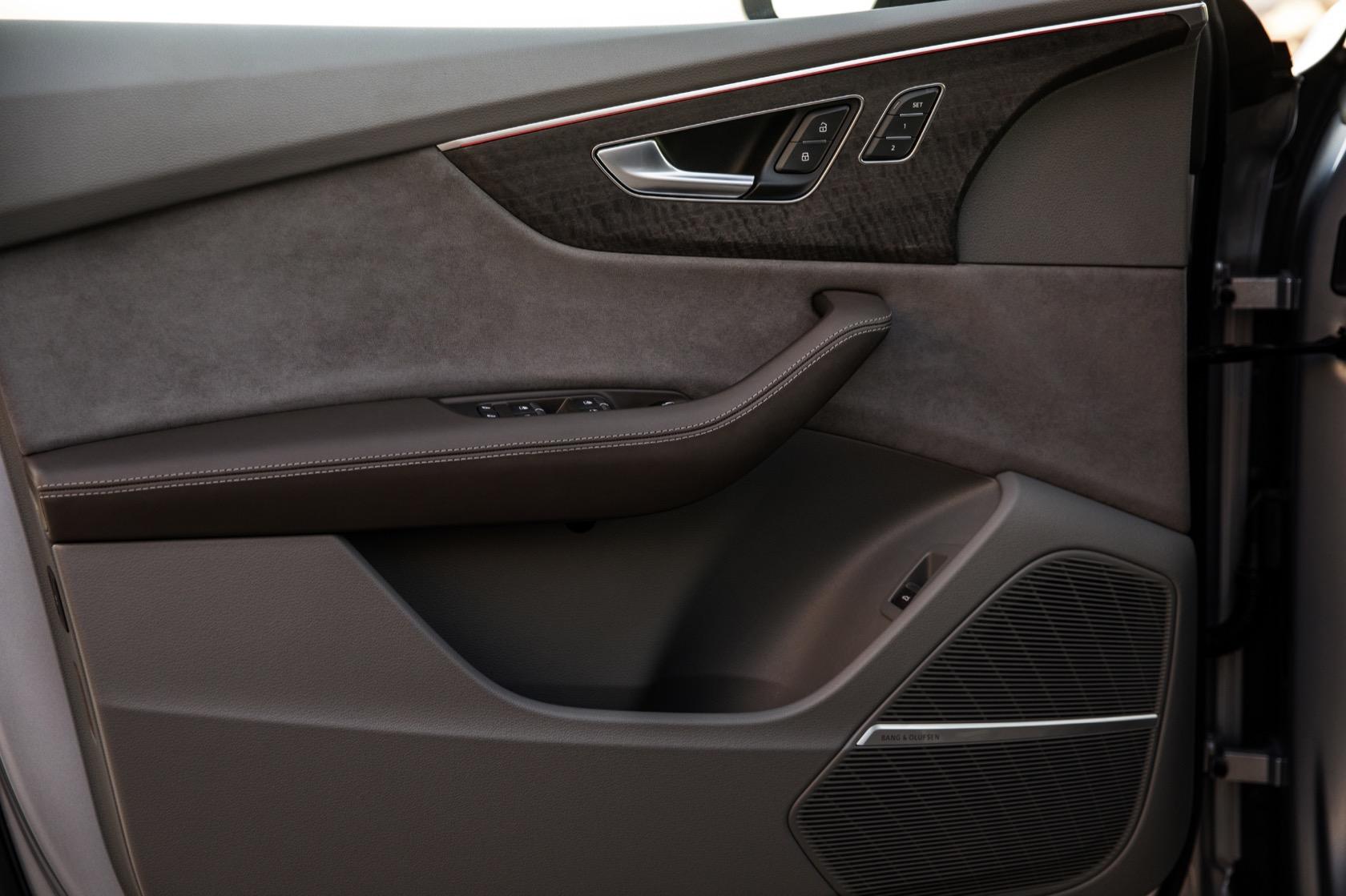 According to Audi, that's courtesy of a special material around the edges of the frame that allows for a tighter fit with the glass. The b-pillar carves a wedge for the front and rear windows to perfectly slide over. It's unclear at this stage whether the double-pane glass will make it to US cars, though Audi insists that even without it the Q8's cabin will stay impressively quiet.
