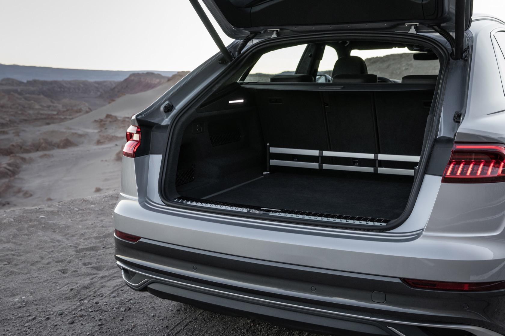 The rear seat back rest reclines, and the seats can scoot forward for additional luggage space in the back. While the Q8 may be shorter than the Q7, it's still longer than the BMW X6 and the Mercedes-Benz GLE. Interior space is more than adequate for five full-sized occupants. Though it's a strict five-seater, without the Q7's third row seating, that does mean the Q8 offers 21.4 cubic feet of cargo space with the seats up and a healthy 62 cu-ft with them down.