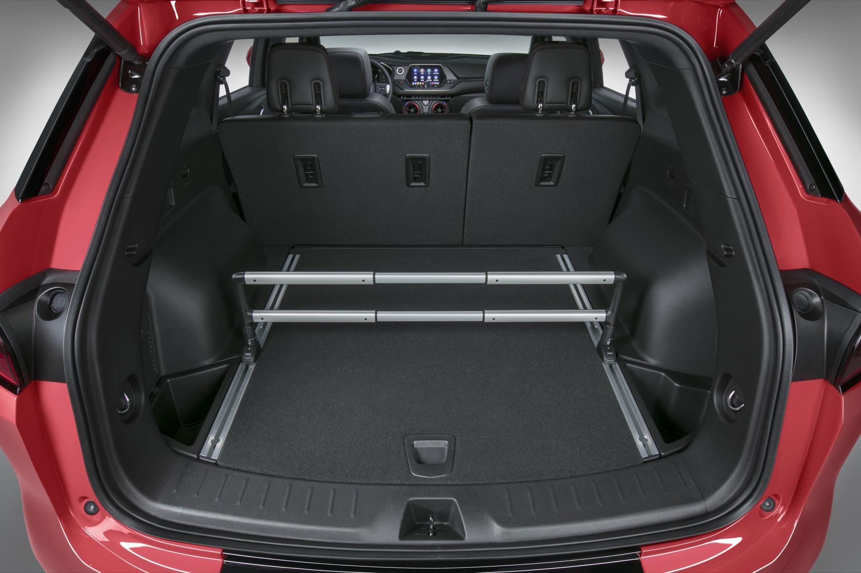 Inside, wireless phone charging and six USB ports are optional. An 8-inch touchscreen with Chevrolet Infotainment 3 software is standard, along with 4G LTE WiFi, Apple CarPlay, and Android Auto. A panoramic dual-pane power sunroof will be optional. There are five seats, with up to 64.2 cubic feet (1,818 liters) of cargo space with the second row folded flat. The rear seats also slide, and there's an available cargo management system that has rails and a cargo fence.