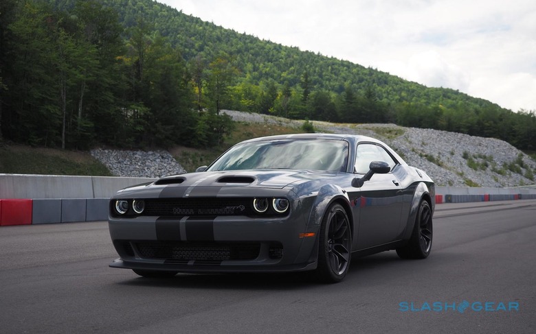 So, you get Launch Reserve, Line Lock, and Launch Control from the Demon, all in the name of straight line performance, but paired with the Hellcat's suspension, wheels, and tires. They're a lot more adept at going around turns, after all, while the Hellcat's brakes – with extra cooling – have also been retained. At 797 hp you don't quite get the Demon's maximum of 840 horses, something Dodge says is down to different air intake restriction calibrations, but you do get a 203 mph top speed and a tenth of a second cut on the quarter mile versus the "regular" Hellcat.