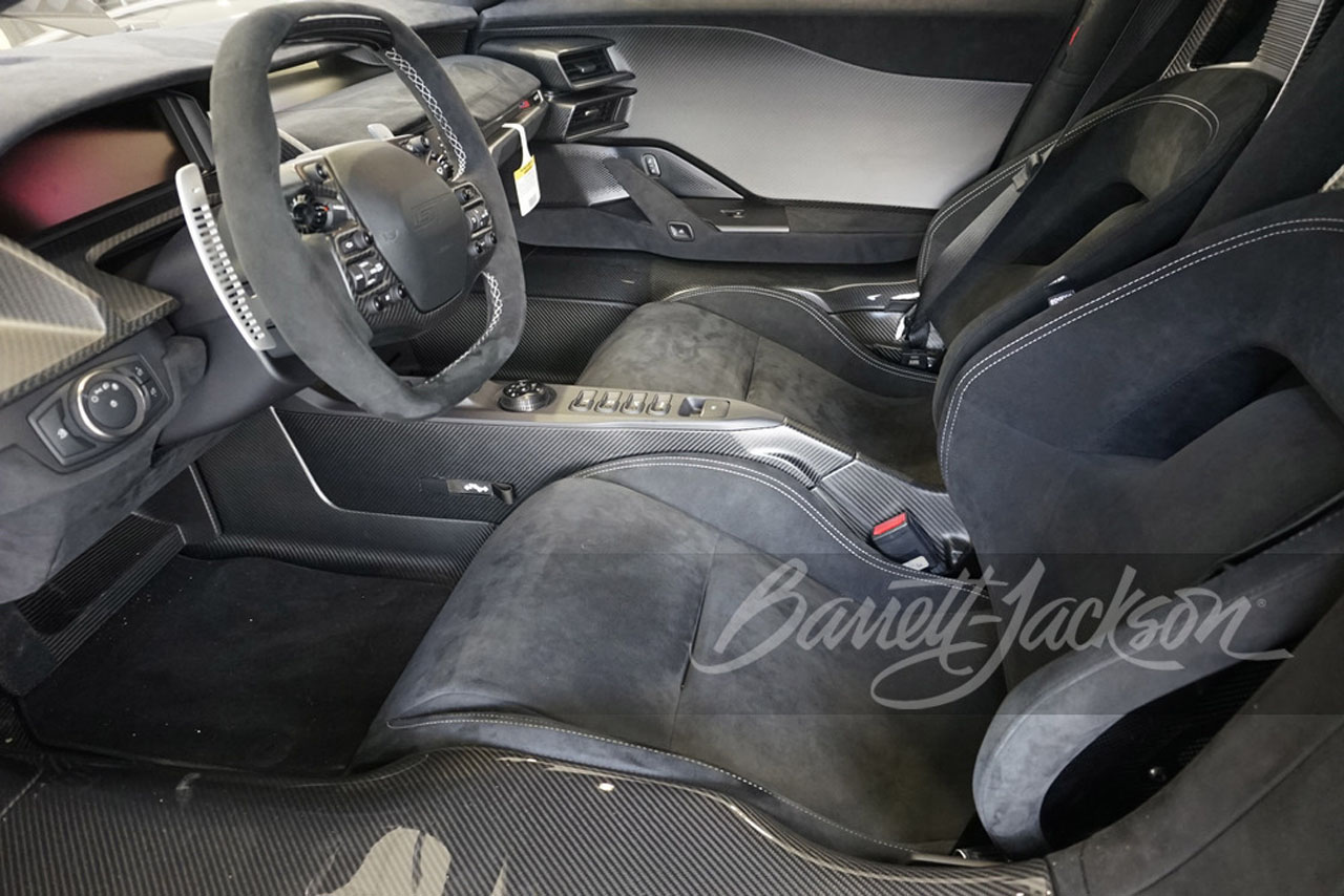 One of the coolest things inside the car is the special F1-inspired steering wheel made from carbon fiber and wrapped in Alcantara, complete with an integrated rev indicator. Like all Ford GTs, the car is powered by a 647 horsepower 3.5-liter twin-turbo EcoBoost V6. The engine is paired with a seven-speed dual-clutch automatic transmission.