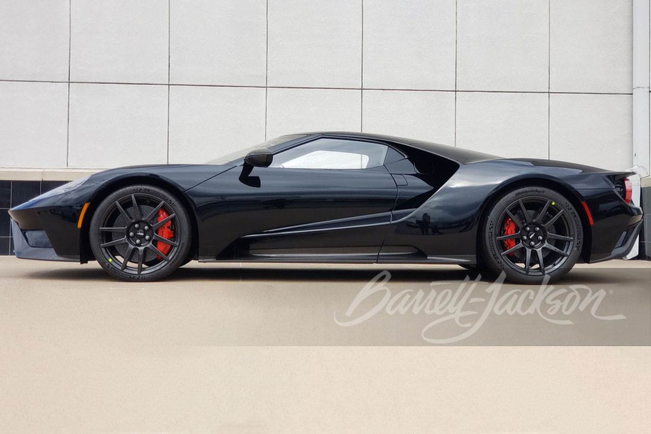 This particular car also comes with a specially built trailer designed specifically to tow the Ford GT. The car had only eight miles on the odometer and was sold by the original owner at the Barrett-Jackson auction in Houston. When the gavel fell on the car, which sold with no reserve, the price was $1,199,000, including lot 759.1 at the auction. That price represents a significant premium over the MSRP paid for the car was new.