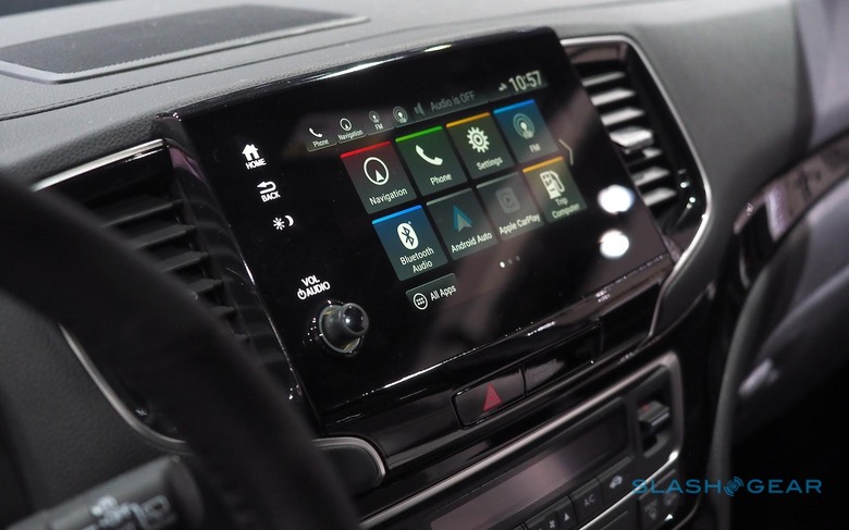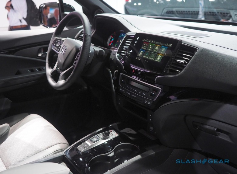 Inside, it feels much like a Pilot does, albeit lacking the third row of seats. There's plenty of legroom in the front and in the second row, while the dashboard gets a sizable touchscreen infotainment system and a big digital display for the driver. Android Auto and Apple CarPlay will be included on higher trims, while features like wireless phone charging, embedded LTE with a WiFi hotspot, and blind spot warnings are optional.