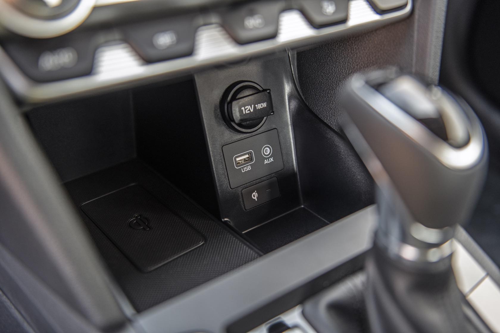 We'll have to wait until that model's official debut to know all the details, but the regular Elantra is shaping up to be a step above the outgoing sedan. Inside, there's a new center cluster, with redesigned air vents, controls, and a storage tray. A 5-inch color audio system screen is standard, with Bluetooth from the SE manual and above. The Limited trim gets Qi wireless charging, while the Value Edition gets Hyundai's Blue Link connected car system with three years of service.