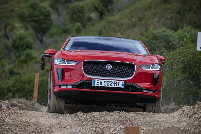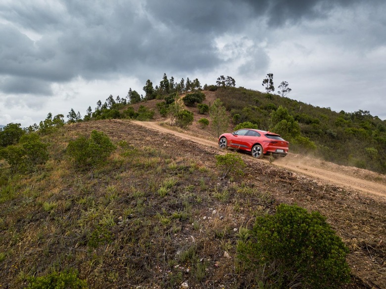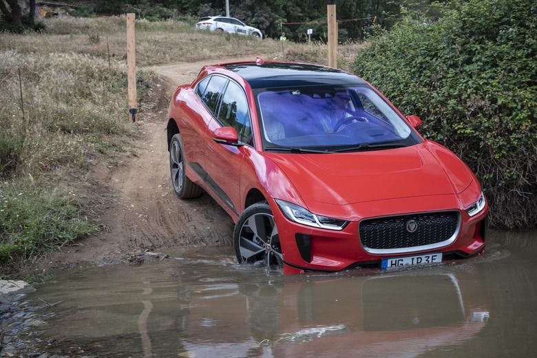 It may be all-wheel drive, but the off-road course Jaguar had set up for the I-PACE was, frankly, not something I'd dare to take the car through, were it my name on the lease anyway. Jaguar's faith is contagious, however, and so I pointed the EV at knee-deep water, mixed in with navigating what, I'd estimate, were 37-40 degree gradients, not to mention some truly rough terrain. Consider me properly impressed.