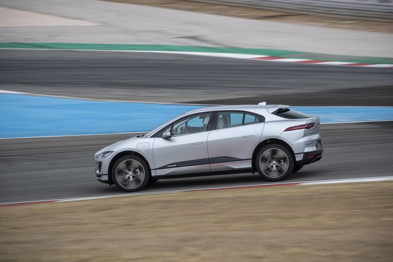 Straight line speed is one thing, but the I-PACE S' 20-inch wheels proved more than sufficient when it came to grip in the corners. That's not to say there's no room for something more frisky. Hug the last wide-right-hander turn at higher speed, and you can kick out the rear for a little sideways action, feeding you neatly into the front straight where it's full throttle once again. What rapidly grew to be addictive is how the EV features contribute to the driving experience, rather than simply mimicking that of a gas vehicle.