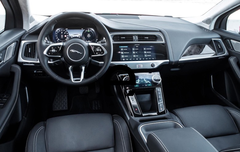 That polish continues with the cabin finish. For the 2019 I-PACE, Jaguar rolled out its fine contrast twin-needle stitching, white LED illumination, and pleasingly authentic trim. The twin touchscreen infotainment system familiar from the Velar has been carried over, seamlessly blending touch and physical controls. For its EV, Jaguar has mounted them on a floating center console with a unique cantilevered design. The upper screen handles navigation and multimedia, while the lower display takes care of HVAC, the power seats, and other settings.