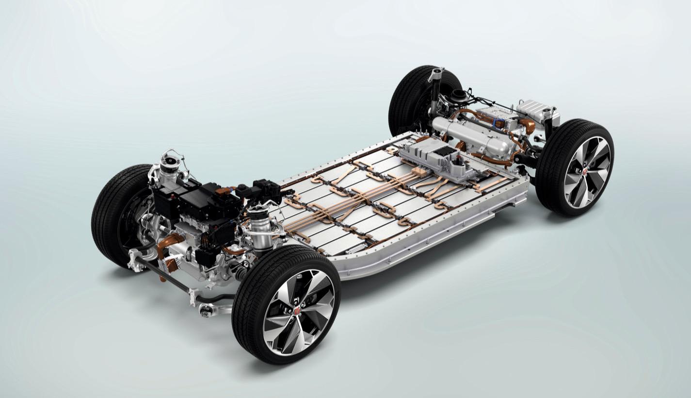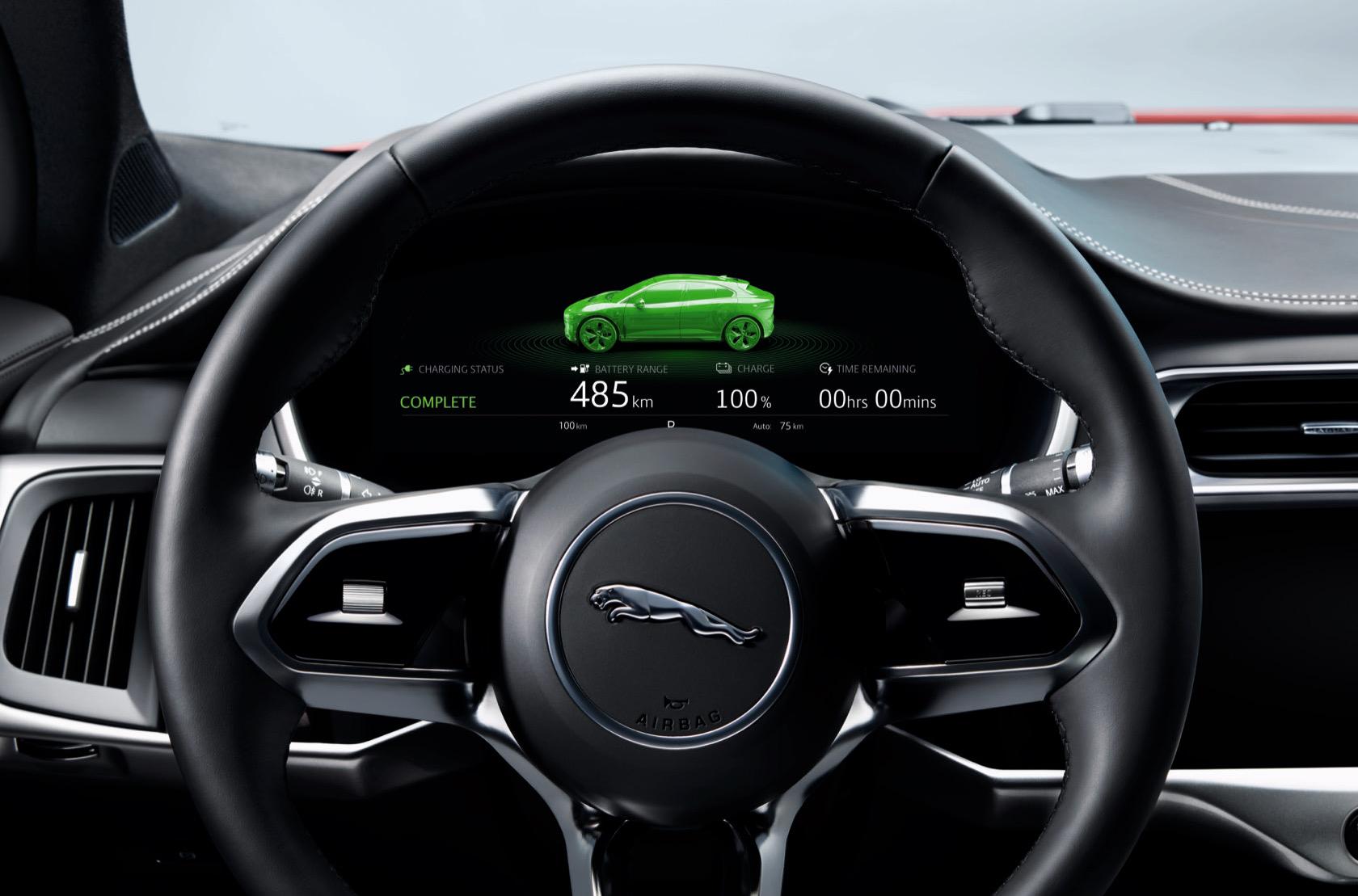 That means a 0-60 mph time of 4.5 seconds, Jaguar claims, courtesy of two electric motors for standard all-wheel drive. Each delivers 197 HP, one at the front axle and one at the rear: together, they're good for 394 horsepower, and a very healthy 512 lb-ft. of torque. Top speed is 124 miles per hour.