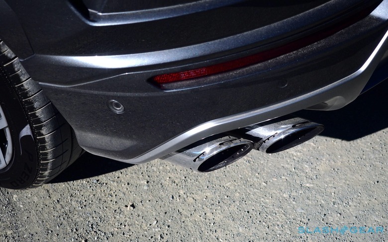 The soundtrack is, you'll be reassured to hear, present and entirely correct. Growling and barking and crackling, building to a throbbing howl as you rocket toward the near-7k redline. Then there's the grip (prodigious) and the ride (unflappably level), again belying the fact that this is not only an SUV, but one which tips the scales at 4,800 pounds.