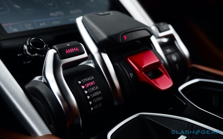 That goes for the virtual cockpit-esque digital instrumentation, and the steering wheel buttons which are what you could expect to find in an Audi A4. Clearly Lamborghini spent more time on the paddle shifters, which are oversized slices of machined metal that could each double as a Batarang. Weirdest flourish of all is the cluster of transmission and drive mode controls, as though the levers from some luxury yacht have been repurposed as a robot's codpiece.