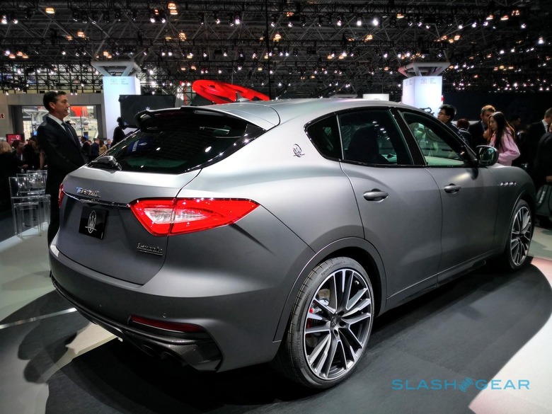How well that all works, we'll have to wait to see. However, what we do know from the 2019 Levante Trofeo's New York International Auto Show debut is that it certainly looks the part. The external changes are mainly lower down on the body, with a new lower front fascia and rear bumper. Side air intakes are more aggressive, with aerodynamic wings added, and there are carbon fiber side bezel blades and a carbon fiber splitter.
