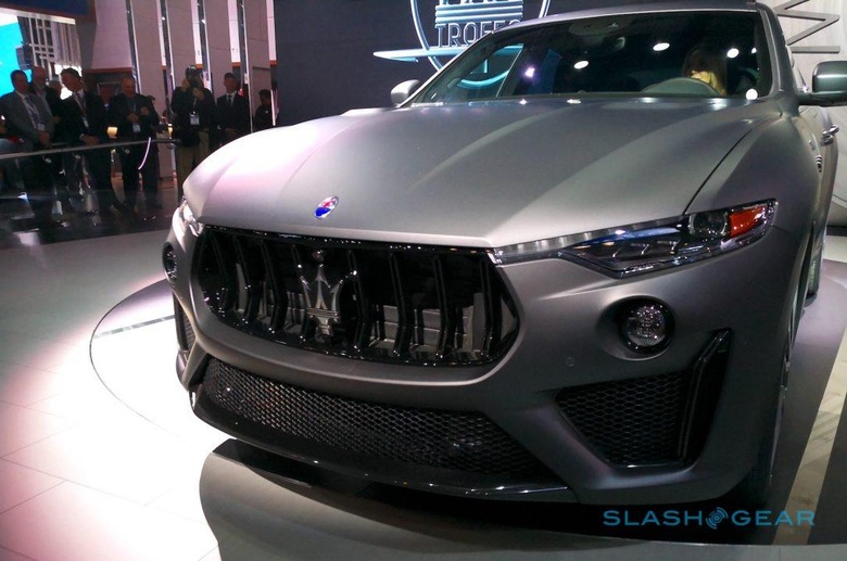 Production kicks off this summer, beginning with a limited-edition Levante Trofeo launch edition. That has matte Grigio Lava paint and matching, matte-finish wheels, plus red brake calipers. Inside, there's black leather with blue or yellow stitching, and Maserati will finish the SUV with a serialized launch edition badge on the dashboard which includes the customer's name. Pricing for that, and the regular 2019 Levante Trofeo, is yet to be announced.