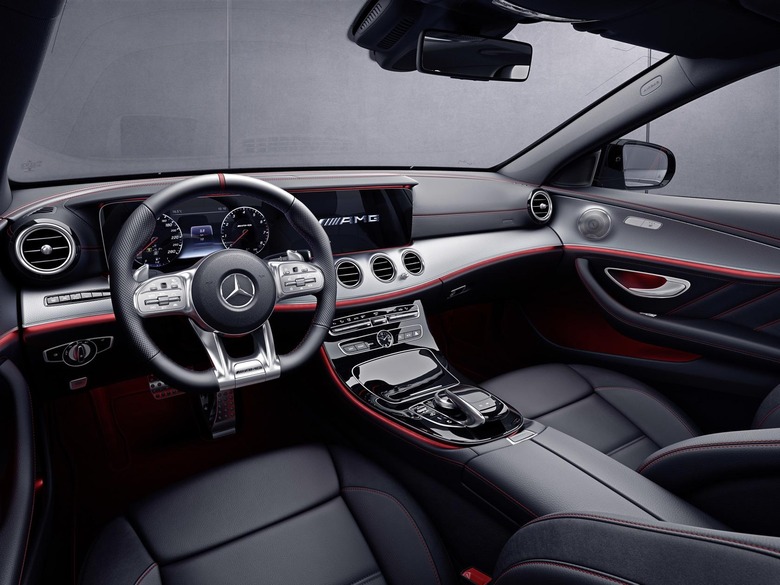 Torque, meanwhile, hits 384 lb-ft. between 1,800 and 5,800 rpm. However, courtesy of the EQ Boost starter generator, the AMG E 53 Sedan can add a further 184 lb-ft. when required. It'll also add 21 horsepower more. Top speed is now 130 mph, and the car will do 0-60 mph in an estimated 4.4 seconds.