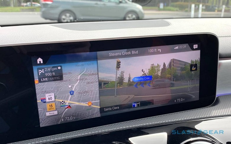 You can issue navigation instructions in several ways, either calling out the whole address – which the car seamlessly understood – or asking for a more general search, like the nearest Starbucks. MBUX doesn't demand specific command language, either: I could say "navigate to..." or "get me directions to..." or whatever seemed most natural. Follow-up commands, like searching for a gas station along an existing route, can often be near-impossible to do with voice control systems, but were no issue in the A220.
