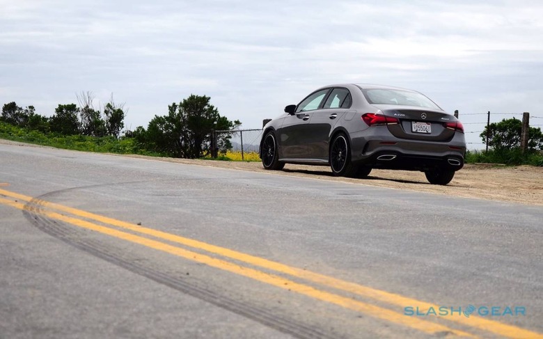 The 3,417 pound curb weight helps – a smudge lower than the A3 in Quattro form – as does the small footprint. While the A-Class may look like its bigger sedan siblings at first glance, it's a far more manageable car in tight corners. The 4MATIC all-wheel drive lends confidence, and even in Comfort mode and with no air suspension on offer, it feels planted and controllable.