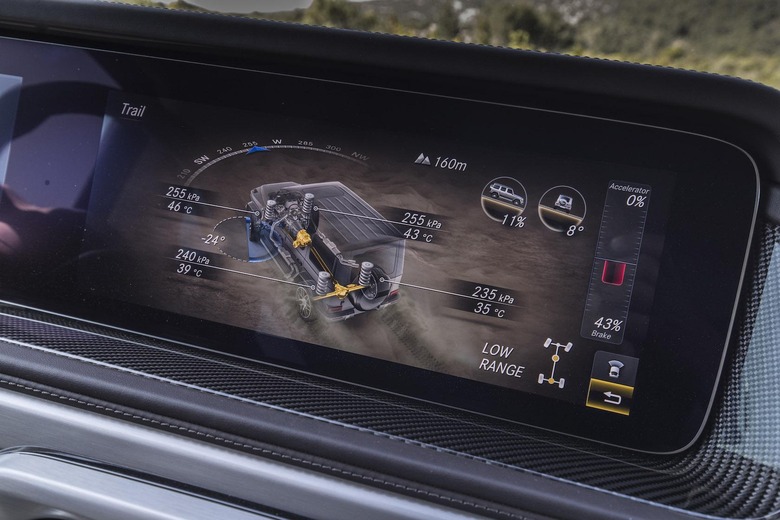 The G 550 gets the new "G" driving mode, and it's basically responsible for all the heavy lifting when you're off-road. That means managing the steering input, handling the gear shifts, and figuring out the right throttle control. It automatically activates as soon as one of the three locking differentials are switched, or when the G-Class is in low range.