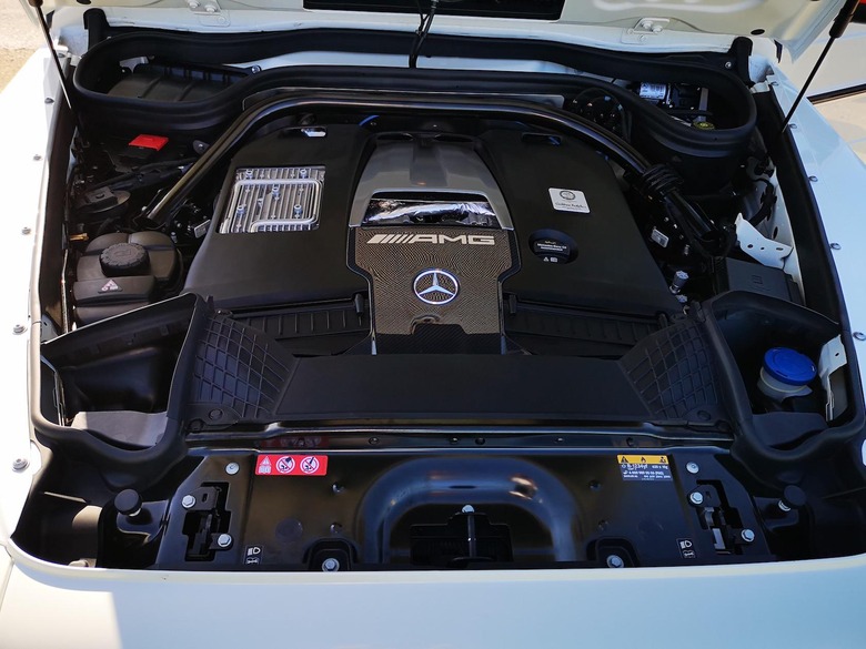 The G550's 4.0-liter V8 biturbo engine, mated with the AMG SPEEDSHIFT TCT 9G transmission, is good for 416 hp and 450 lb-ft of torque at 2,000 to 4,750 RPM, and an electronically-limited max speed of 130 mph. Mercedes-AMG dropped the previous 5.5-liter V8 biturbo, in favor of a handcrafted AMG 4.0-liter V8 biturbo with 577 hp and 627 lb-ft of torque at 2,500 to 3,500 RPM. That's an increase of 14 hp and 66 lb-ft of torque over the previous SUV. Once again, whether on or off the road, shifting gears is smooth as melted butter. It doesn't seem to matter whether you're crawling over a bunch of boulders or pushing hard through winding roads, the G-Class just chomps right through.
