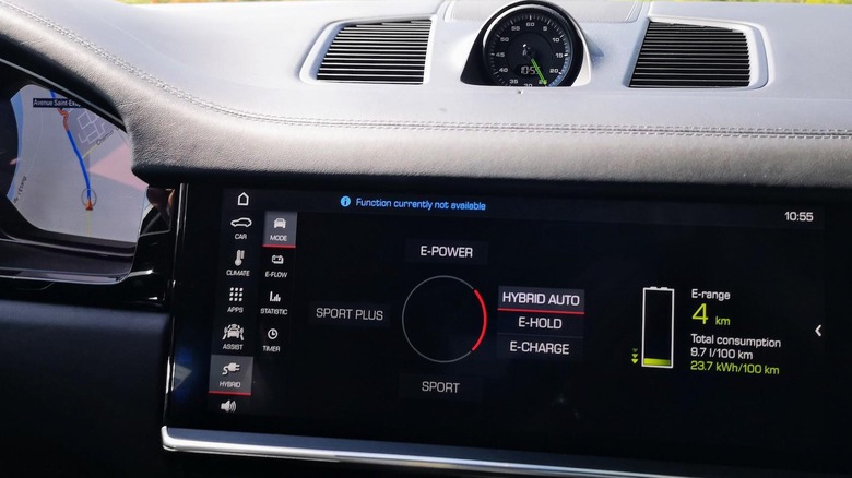 Two other drive modes exclusive to the Cayenne Hybrid include E-Hold and E-Charge, which you can manually set by using the PCM's Hybrid menu, which you can activate by clicking the button to the left of the gear shifter.