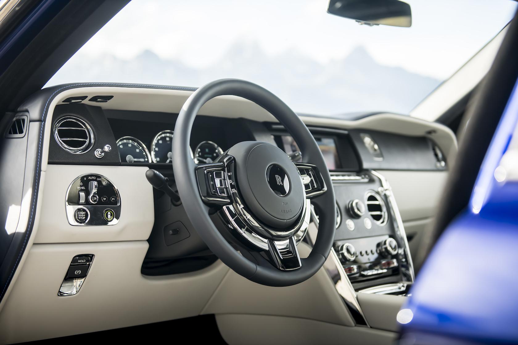 Form and function work together in beguilingly elegant ways. The lower edge of the doors plunges low, covering the sills; they're designed that way so that your clothes need never brush against dust or mud thrown up during your journey. Both the front and the rear-hinged back doors open wide, for a graceful entrance or exit that will likely also make loading and unloading children or pets more straightforward. Press a button and they power closed again. Rolls-Royce is determined that Cullinan will be family-friendly and possess a greater degree of everyday usability than its other cars.