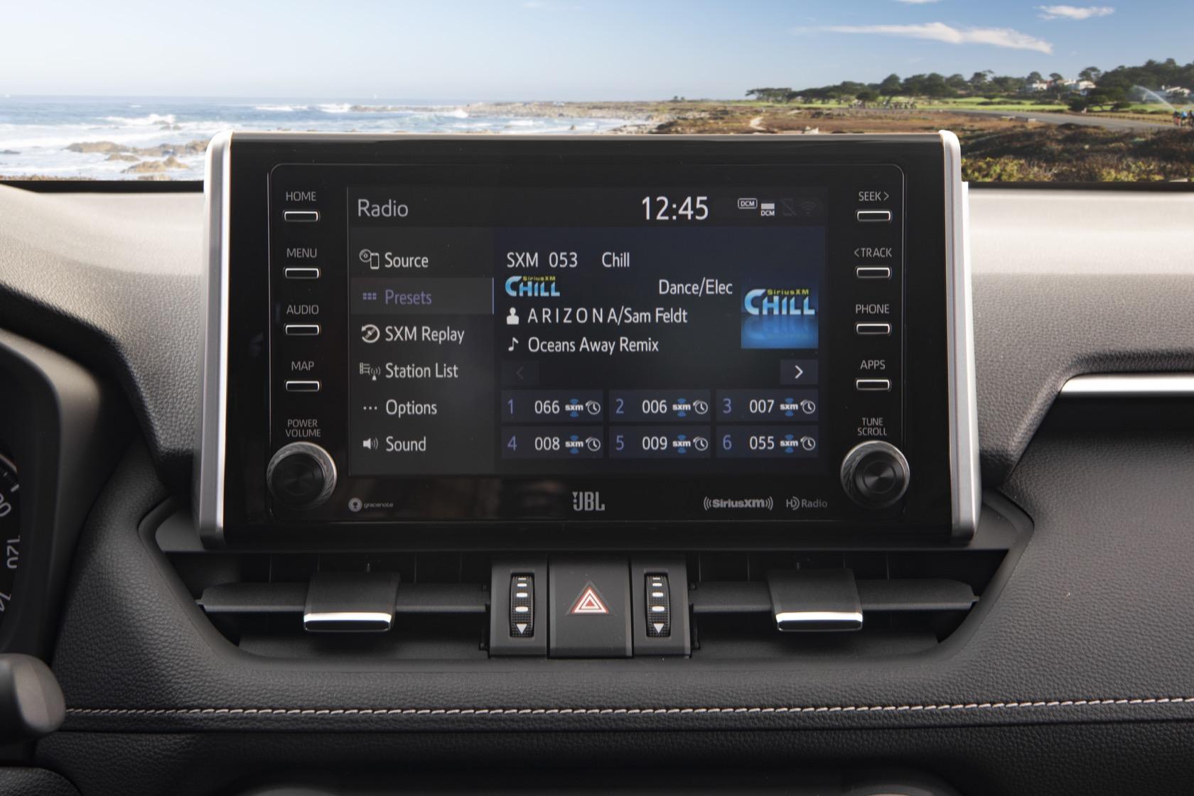 Equally important, every 2019 RAV4 also comes outfitted with Toyota Safety Sense 2.0 as standard equipment. That includes lane-keep assist, adaptive cruise control with highway steering assist and road sign recognition, and pre-collision braking with cyclist and pedestrian detection. However blind-spot monitoring, parking sensors, a 360-degree camera, and the camera-based rearview mirror are all optional.