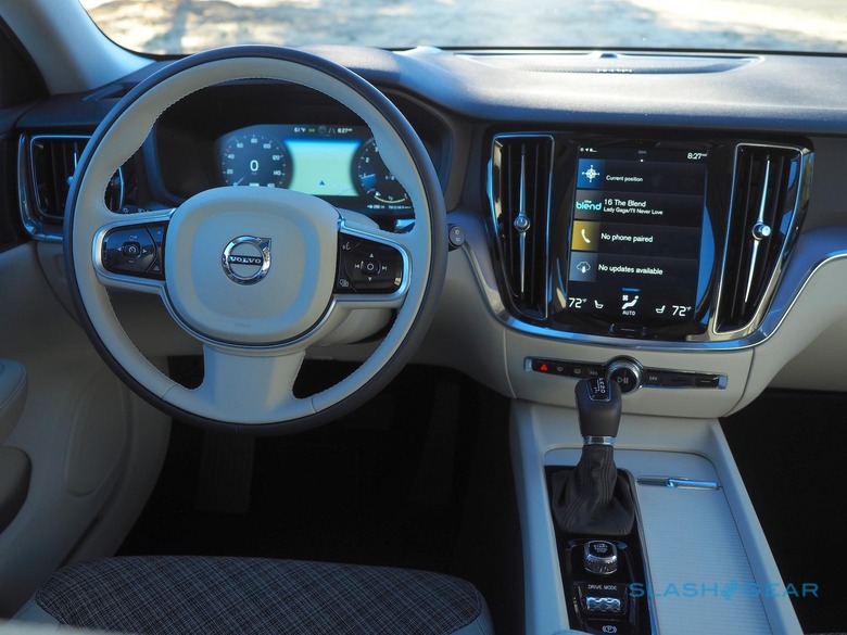 You may not be able to get a V60 Polestar Engineered, but Volvo does offer something special for the wagon-lover. That's the City Weave interior, a special textile that looks like a restrained plaid in black and white. It's a no-cost option in place of the standard leather in the V60 Momentum, and combined with cream leather panels and the two-tone dash it really helps lift the V60's cabin.