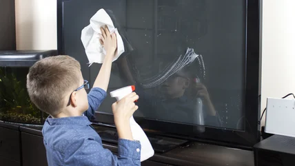 When the digital age exploded in the early 2000s, our TVs morphed into high-tech viewports, complete with wide, flat screens featuring plasma, LCD, and OLED technology, replete with special coatings and glare-reducing features. If you use those same glass cleaners of old now, they'll do infinitely more harm than good. According to virtually every television maker today, you should never use things like standard window cleaners, scouring powder, soaps, alcohol, benzene, ammonia, etc. Doing so could result in permanent damage to the screen. Even pressing too hard to remove a stubborn smudge could cause the liquid crystals to collapse. What's more, using items with rough fibers, like paper towels or tissues, can create scratches, but there is a proper (and easy) way to clean your flat-screen TV.