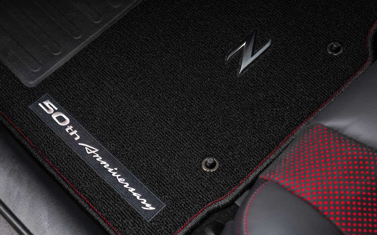 Dark chrome accents are used inside the car along with kick plates that have the Z logo on them. All US 50th Anniversary models come standard with a Bose audio system that has dual subwoofers, active noise cancellation, and active sound enhancement. Power is from the standard 3.7L V6 engine making 332hp and 270 lb-ft of torque. Nissan pairs that engine with a 6-speed manual or 7-speed automatic. Pricing and availability are unclear at this time.