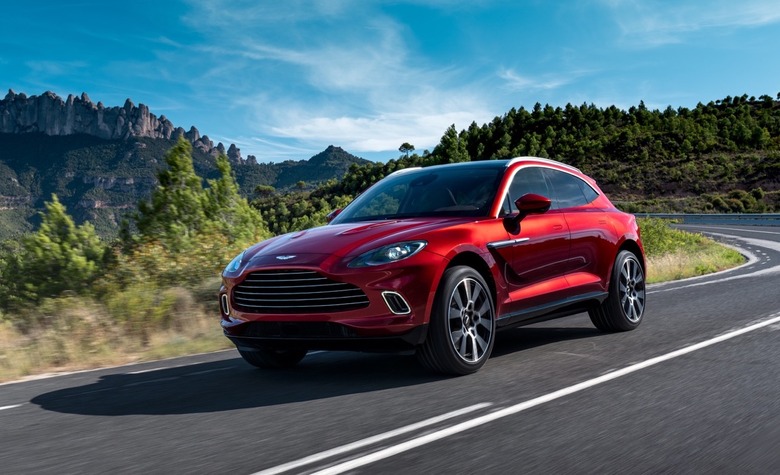 Making that power usable is a nine-speed automatic transmission and an all-wheel-drive system with a carbon propeller shaft, active center differential, and an electronically controlled rear locking differential. The latter is also found in the Vantage automatic, and all of which are also courtesy of Mercedes-AMG. There's an active exhaust system that varies the tailpipe growl, to allow the DBX to shift from a refined and luxurious SUV into a sports car. Aston Martin's claim is 0 to 60 mph in a mere 4.3 seconds. Top speed is rated at 181 mph.