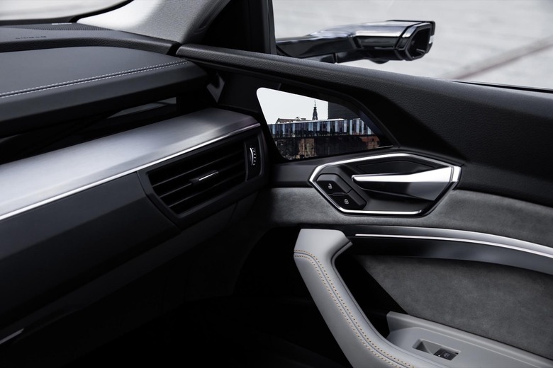 The upshot isn't just aesthetic, though the electric SUV does look good without traditional mirrors. Audi claims the virtual mirrors help cut drag by between 2- and 7-percent, leaving the EV more aerodynamic as a result. That should pay dividends when it comes to range.