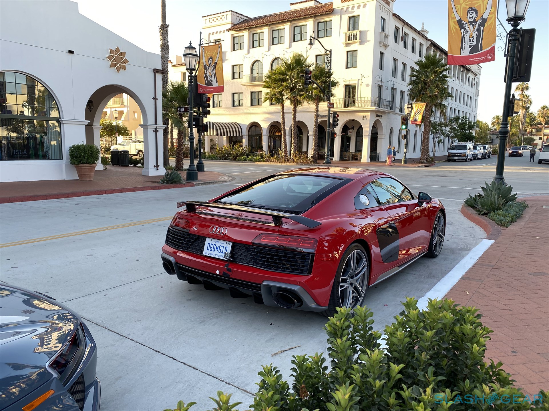 Looking down the R8 V10 Performance's hood at the marvelous scenic routes of Santa Barbara, California, I felt a sense of déjà vu as the car crisply dispatched a sweeping left-hander. Memories of riding shotgun with Audi racing driver Dion von Moltke in an R8 V10 Plus were now shuffling like a Rolodex (yes, I'm old, I used one many years ago), when at Daytona International Speedway I experienced first-hand what a bone-stock R8 V10 can do in the hands of a professional. The R8 was always an easy car to drive on the street, but it takes experience (and serious nerve) to properly tame the car on a racetrack.