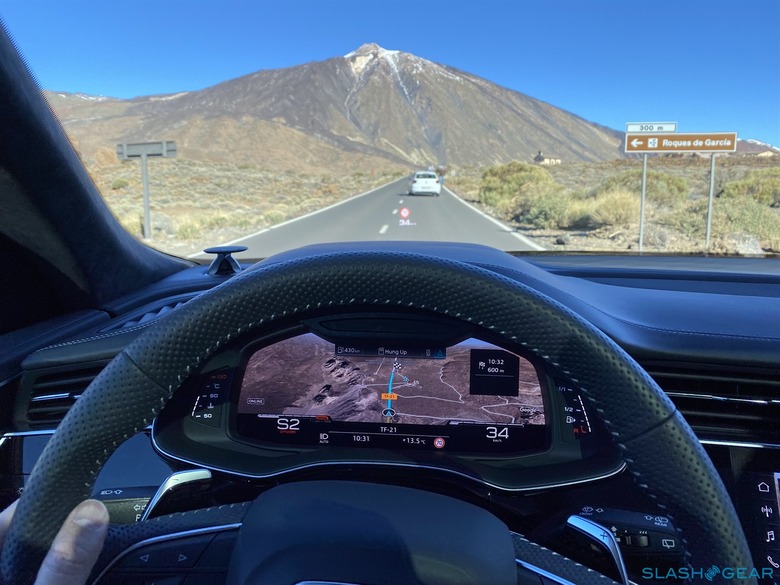 We tested out the RS Q8 in the Canary Island and Tenerife, Spain, where the roads are unforgivingly tight with little to no shoulders in the event you understeer. A slight mistake could net a costly repair. I'd be lying if I told you the big Audi slotted perfectly between the lanes at high speed – make no mistake that it's still very much a large SUV. The adaptive air suspension and all-wheel steering are every bit as helpful as you'd hope in those challenging drive conditions.