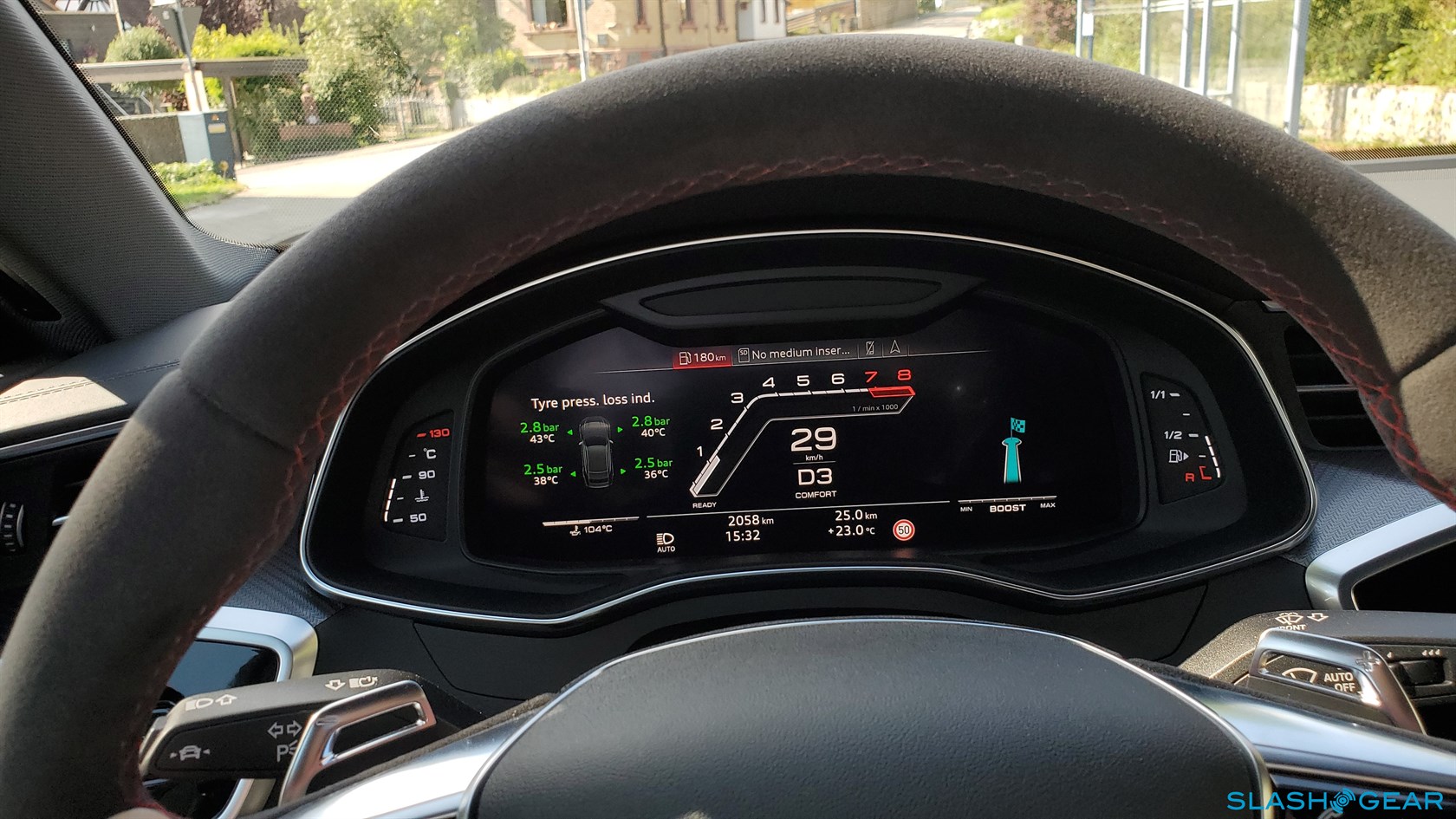 Performance is readily accessible, however. Press the RS button on the steering wheel and the Audi virtual cockpit flips from analog displays to digital, with a matching animated rev counter. It even has a shift light graphic that tells you when to change gears. Admittedly, having a shift light is not revolutionary in the strictest sense of the word, but it's the way the graphic lights up in green, yellow, and finally blinks in red that makes reaching the redline a bit more addictive than usual.