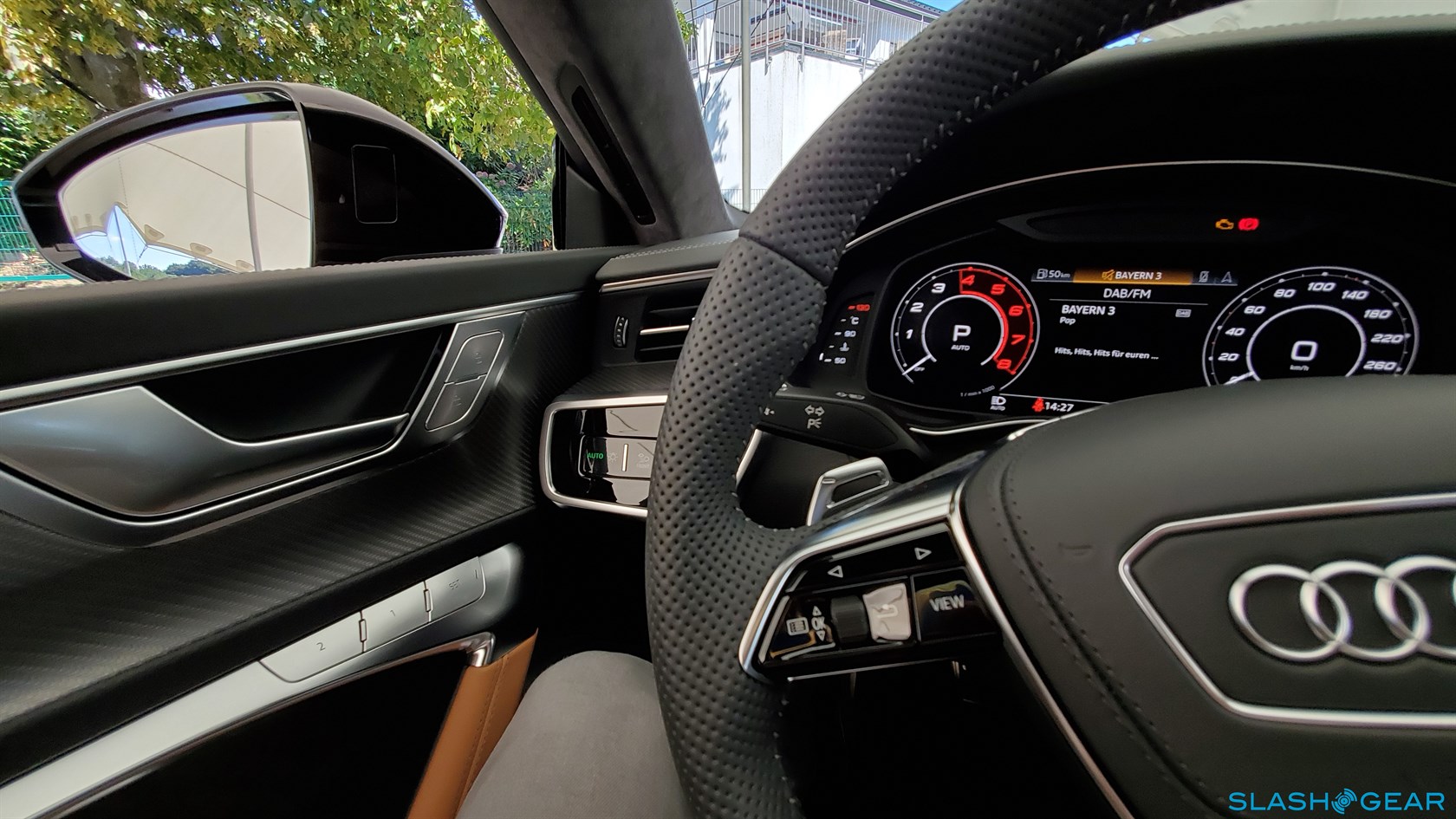 While fuel economy is usually the last thing to think about in a car such as the RS7 Sportback, still Audi fitted it with its 48-volt mild-hybrid system. That uses a belt alternator starter and a small lithium-ion battery pack, recovering up to 12 kW of power. The new system is oriented to improve efficiency, allowing the RS7 to coast for up to 40 seconds with the engine turned off – though not on US-spec cars – or to operate the start-stop system at speeds up to 14 mph. Also helping the cause is a cylinder-on-demand system, that can deactivate four of the eight cylinders when driving in traffic. All told, Audi claims fuel savings of up to 0.8-liters per 100 kilometers – assuming, that is, you drive conservatively. That's a big proviso.
