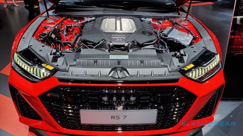 Before we discuss the mouthwatering V8, it's only proper to divulge some important bits about the mild hybrid system. Yes, the 2020 Audi RS7 Sportback is a mild hybrid, but it has nothing to do with boosting engine performance. Unlike the EQ Boost mild hybrid system in use by Mercedes-AMG, Audi's version is engineered to boost efficiency and fuel economy.