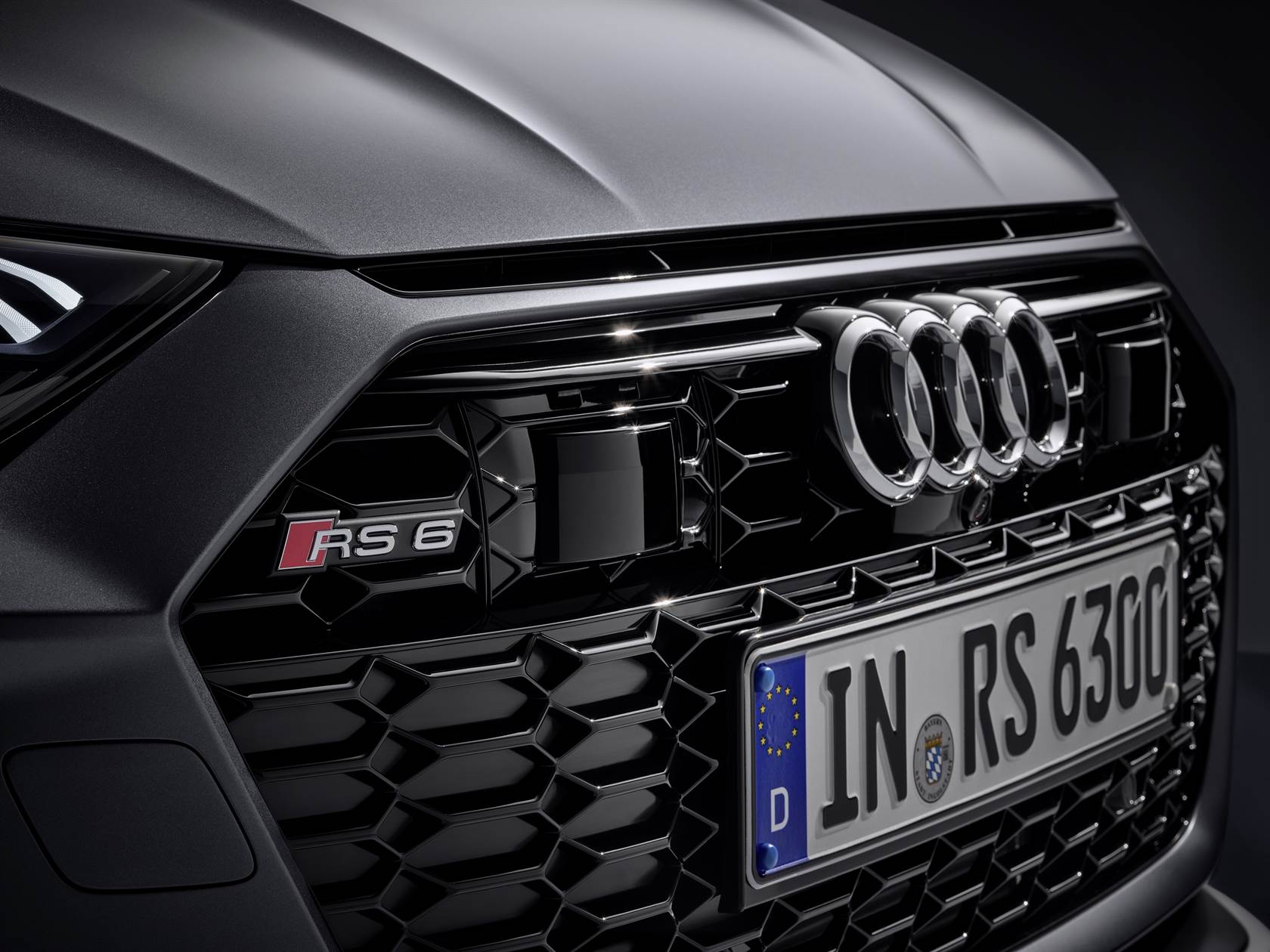 22-inch wheels are housed under flared wheel arches, further accentuating the outsized proportions of the car. The RS6 gets a new power dome hood and the front headlights of the A7, which can be optioned with RS Matrix LED laser lights. They flank a three-dimensional honeycomb Singleframe grille in gloss black.