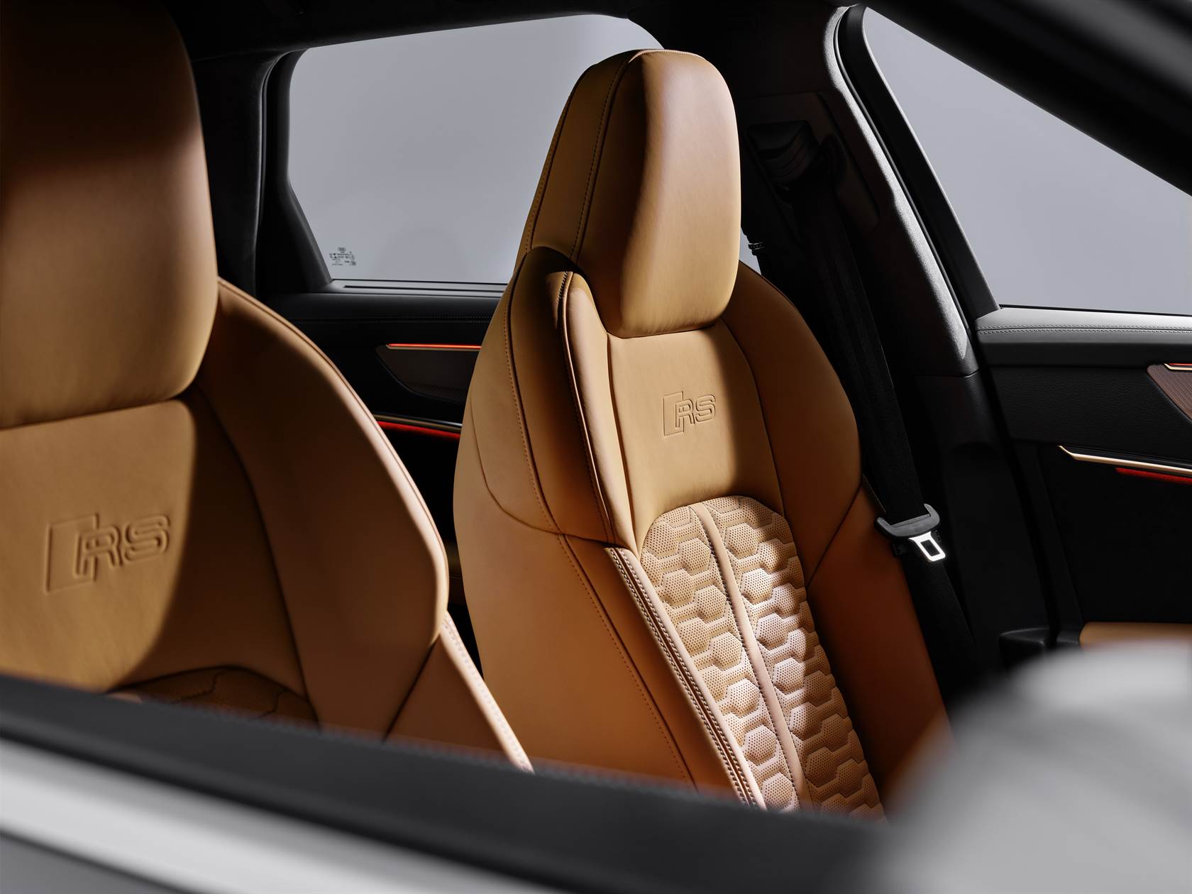 The sport seats are adorned in black pearl Nappa leather and Alcantara, while the front door sills are illuminated as well. You can choose perforated Valcona leather in a honeycomb pattern, or select from two RS design packages to personalize your RS6 Avant.
