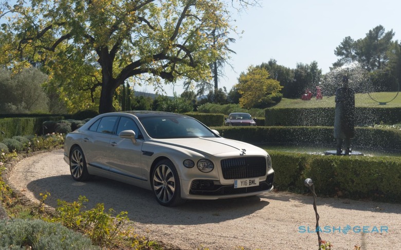 All of the driver's instrumentation is digital, and Bentley's switchgear is a tactile mixture of brushed aluminum and piano black. Only the odd inclusion of what look like borrowed Audi steering wheel buttons jar the eye. In the rear, there's a new touchscreen remote which slides out to offer control over the multimedia, HVAC, seat positions and massage, remotely program the navigation, and even control the pop-out Bentley flying "B" on the hood.