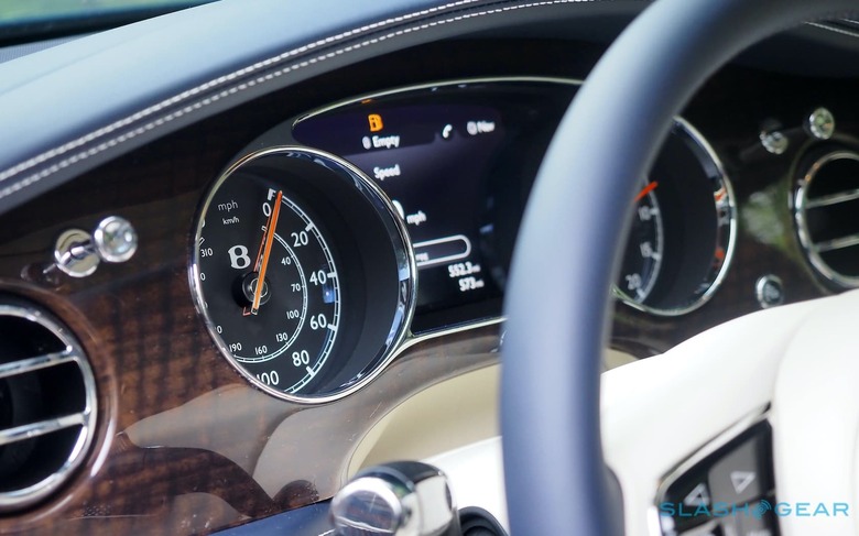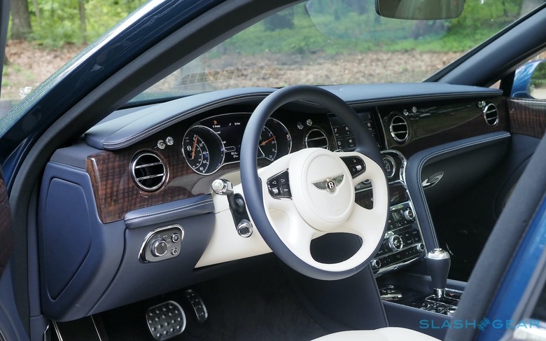The eight speed gearbox slushes through its ratios with the subtlety of a royal butler. Demand pace from the Mulsanne, and there's the slightest pause first, the sense that it's pulling up its sleeves before proceeding to hurtle forward with little consideration of what common-sense says something this large should or shouldn't be able to do.