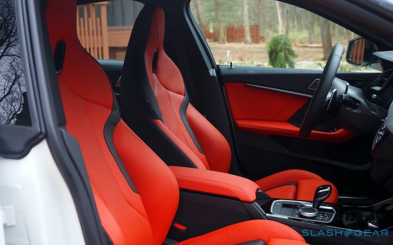 Inside, sunglasses may not be optional if you check the Magma Red Dakota Leather interior. The $750 M Sport seats are comfortable and adjust nicely, while the dashboard borrows some of the exterior's sparkle with its textured silver trim. It's plastic, sure, but at least it's all miles away from the dour black-on-black-on-black that so many "sports" sedans seem to default to.