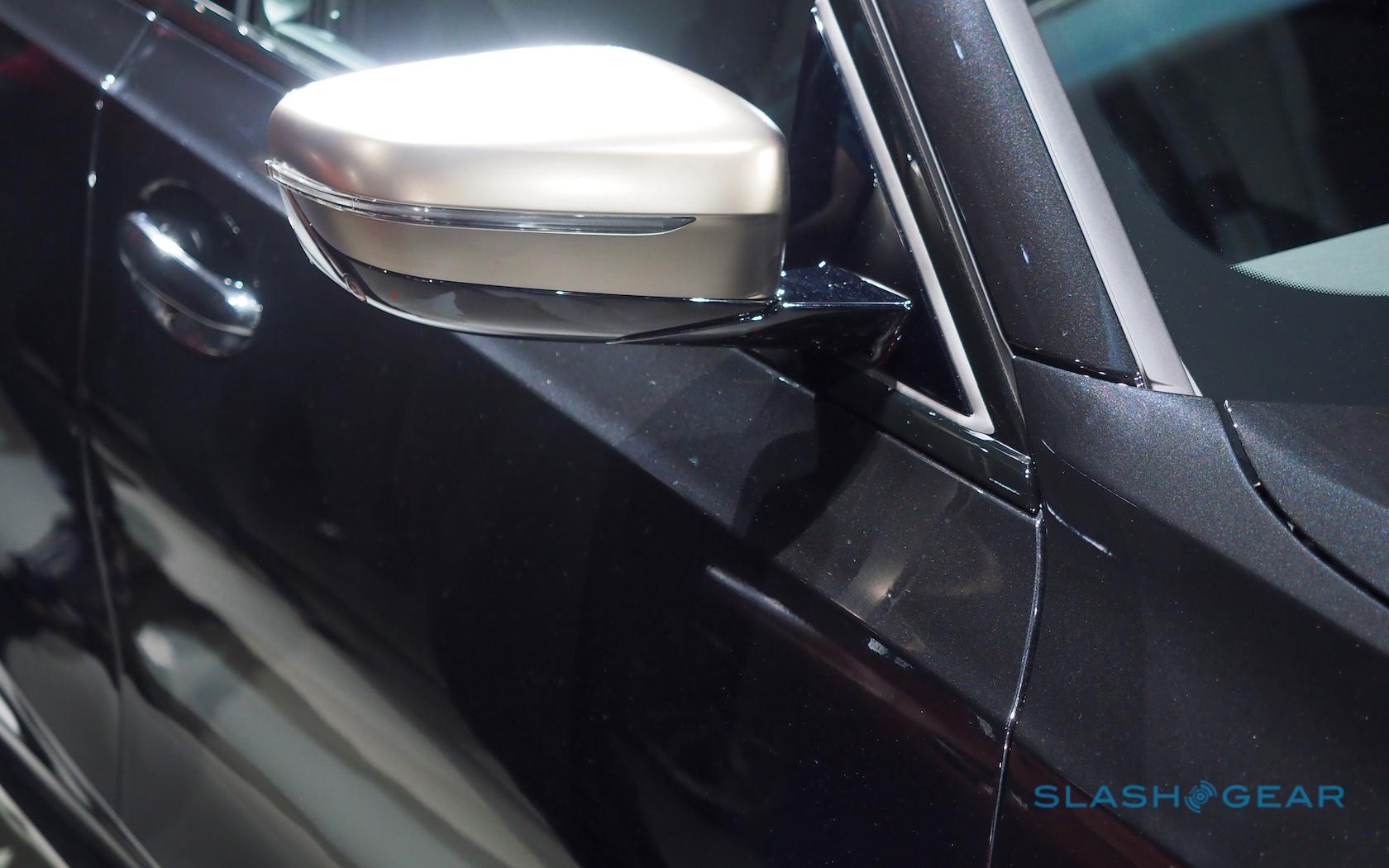 There's ambient LED lighting, which is functional as well as aesthetic. The Dynamic interior light feature pulses the LED strips in different signals depending on vehicle functions. Get an incoming call, for instance, then the door lighting will flash. 205 watt audio system with ten speakers is standard; a Harman Kardon surround sound system with 464 watts and 16 speakers is optional, as is a head-up display.
