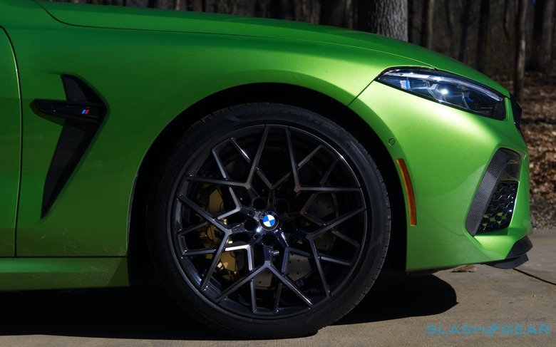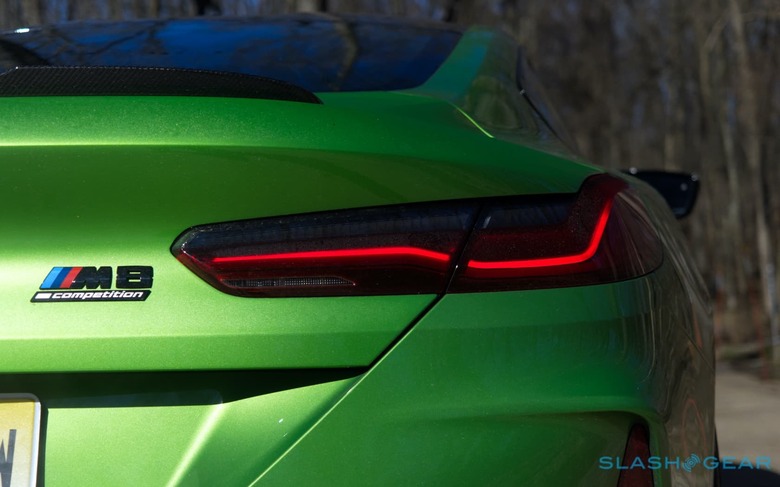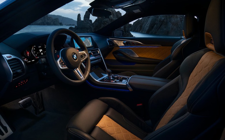 The rest of the cabin is similarly thoughtful, and less vocal than the exterior's hue. A 10.2-inch infotainment display supports both touch and the iDrive knob, while basically everything from BMW's more luxe-minded vehicles – including all the active safety tech and driver-assist systems – can be had for when you're trying to use the M8 Competition as a real tourer. Just don't expect it to come standard, with two Driving Assistance packages totaling $2,800 if you want the full complement.