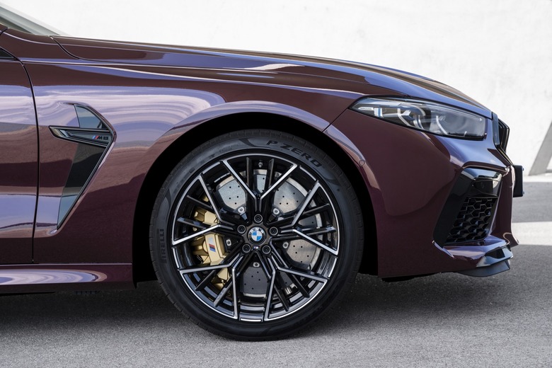M compound brakes with drilled, ventilated discs – 395 mm at the front, 380 mm at the rear – are standard, with fixed, six-piston calipers up-front and floating, single-piston calipers at the back. M Carbon ceramic brakes are optional. The M8 Gran Coupe gets 20-inch M light-alloy wheels as standard, while the M8 Gran Coupe Competition switches them to 20-inch forged M light-alloy with a gloss-milled 3D structure and bicolor design.