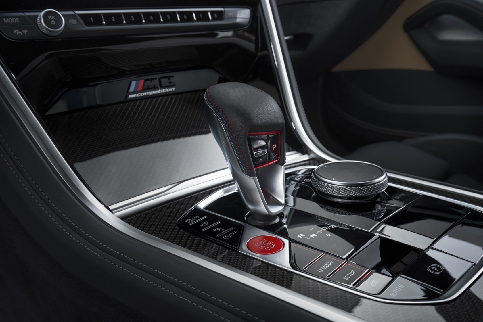 Step inside, and there's the familiar M1 and M2 preset buttons first seen on the M5 on the leather steering wheel. The shift lever has been redesigned, and there are special M Sport seats; the M8 Competition models throw in M seatbelts too. Carbon fiber interior trim is standard, though there are different wood options to choose from too, as are various leather packages.